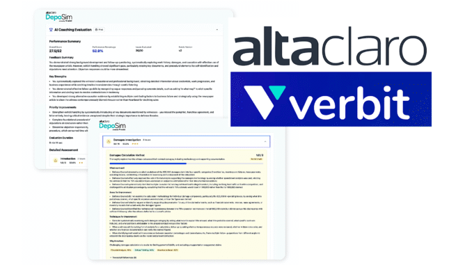 Training group AltaClaro, in partnership with verbal intelligence pioneer Verbit, have launched DepoSim, ‘an AI-powered deposition simulator’. The move comes as law firms begin to …