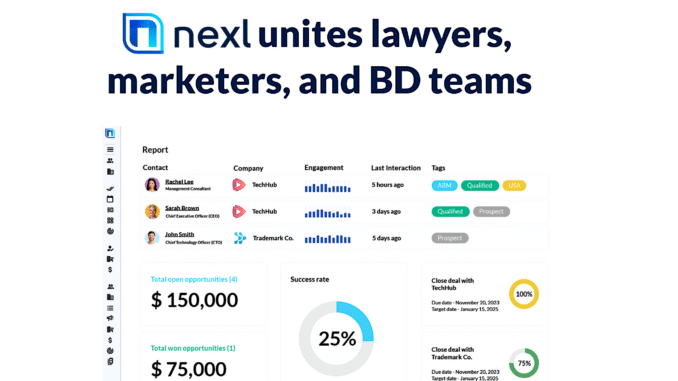 Nexl, the legal go-to-market and CRM platform, has gained $23m in Series B funding led by Tidemark Capital.
