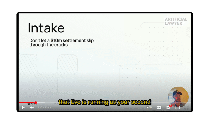 In this week’s AL TV Product Walk Through, Matt Noe, co-founder of Eve, shows their new AI-driven intake product designed to assist law firms in gaining and managing client leads more effectively.