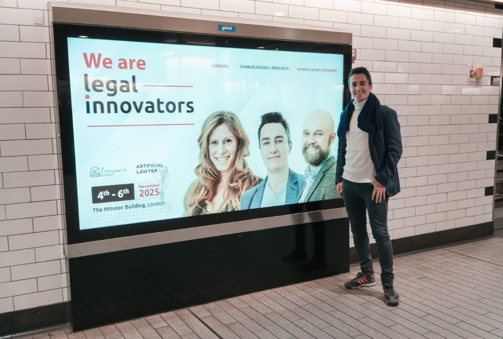 Never thought I’d see the Artificial Lawyer and Legal Innovators UK brands on the London Tube network 🚇 ….!!! But we did it – thanks to Cosmonauts’ ingenuity! That’s got to be a landmark if ever there was one.