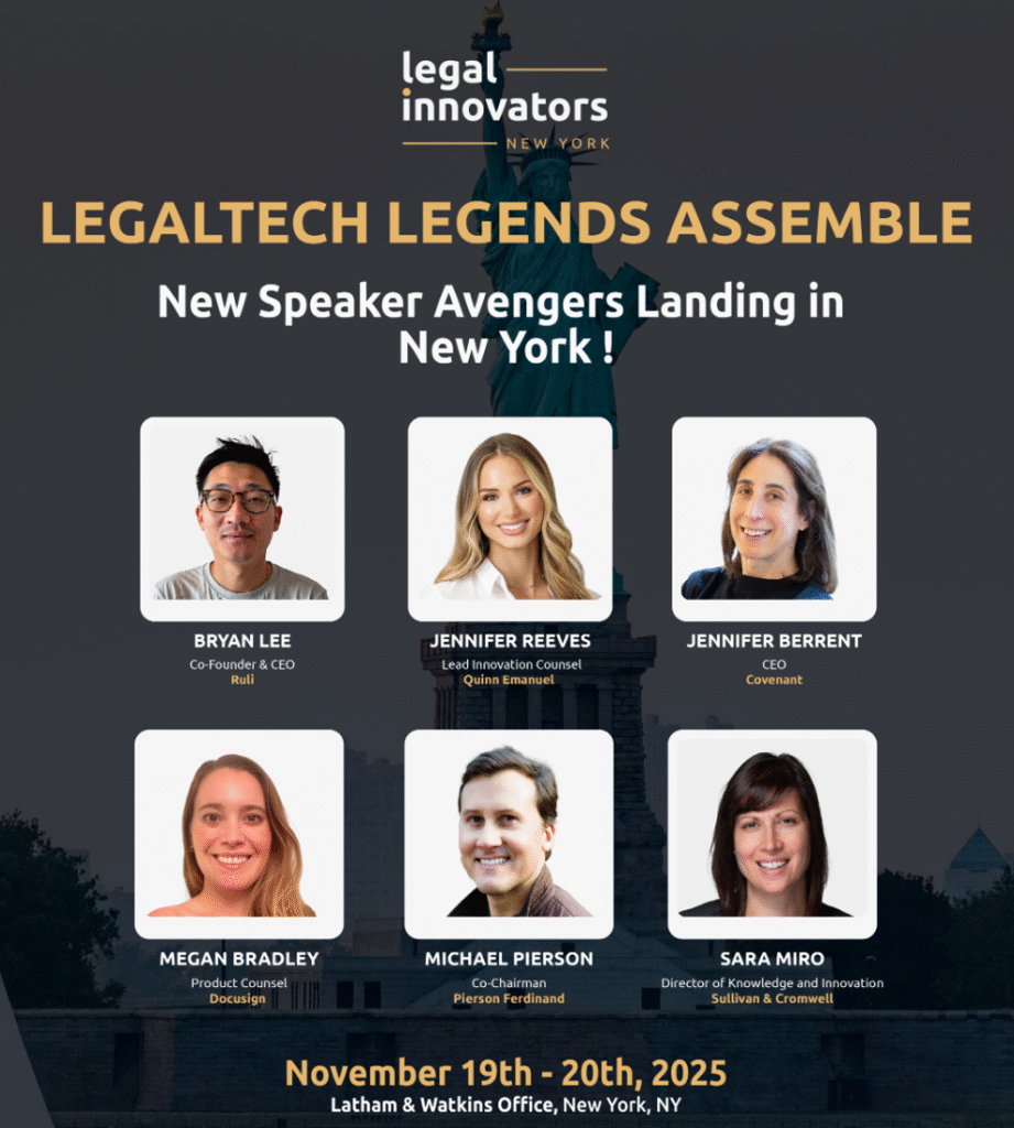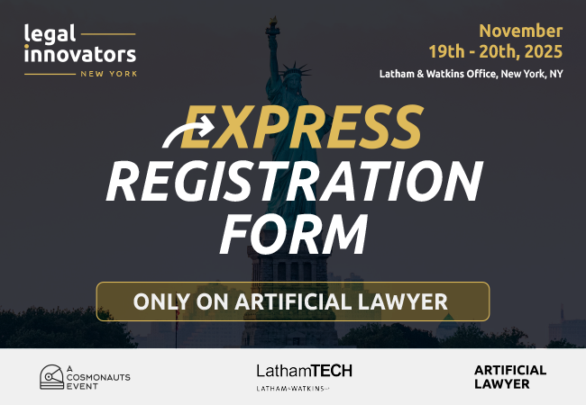 So, as noted, if you’d like to take the speedy boarding route to Legal Innovators New York, on Nov 19 and 20, then please sign up here – which is free to attend for those at law firms and inhouse.