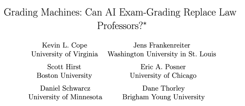 Schwarcz told Artificial Lawyer: ‘My answer is yes, we do need law professors, because it’s still the case that many students learn best from in-person instruction from humans. I also think we’re not yet at the point where we can totally outsource grading of law school exams to AI; we don’t yet know whether AIs are as reliable as humans in grading exams, and even in our experiment we had human law professors write the exams and the grading rubrics.