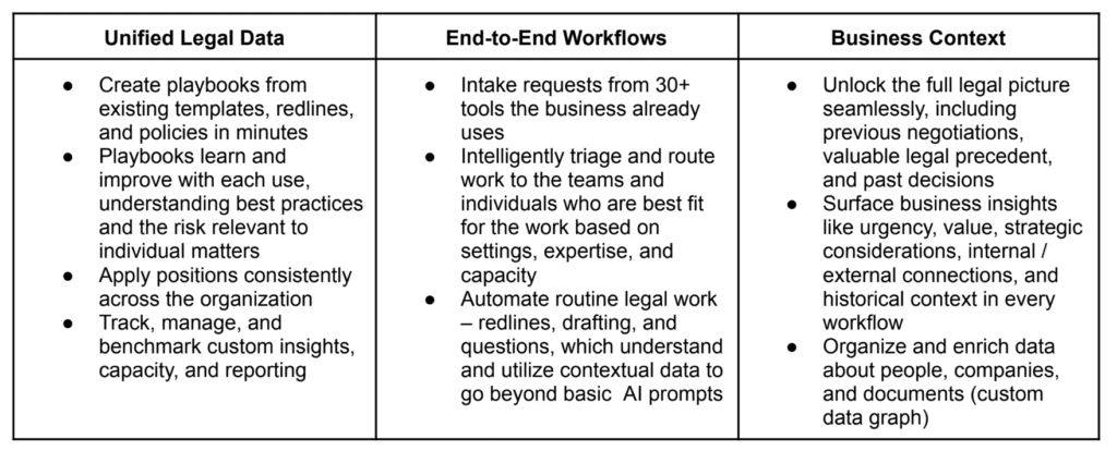 We are thrilled to have the support of such great investors and partners. Sequoia, Kearny Jackson, SV Angel, as well as other investors and the many GCs and lawyers, recognize the opportunity to empower in-house teams. I think it also speaks to the remaining opportunity that still exists. Most legal teams do not have business context figured out — and we want to partner with them to solve that. Every day we talk to dozens of teams without legal tech solutions yet, and investor interest is a testament to that remaining gap.