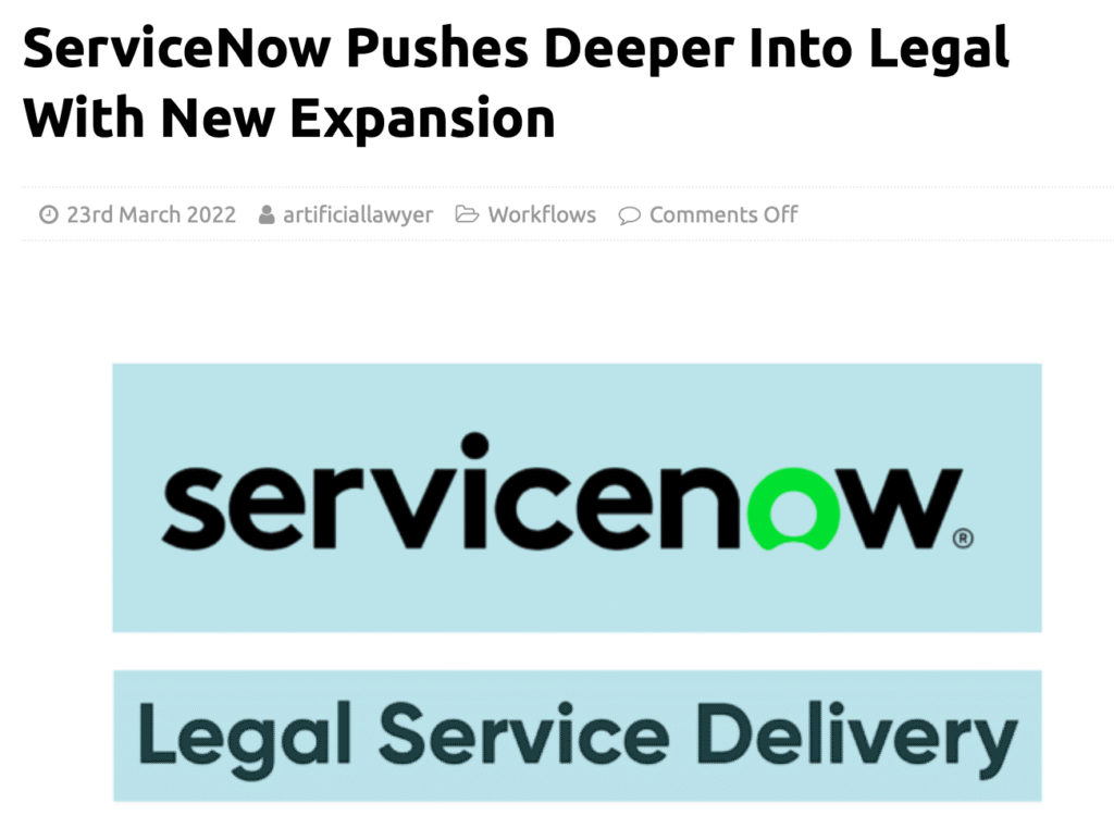 Moreover, ServiceNow is not ‘a legal tech company’ as such either, they cover many kinds of enterprise workflows, with legal as a small subset of that.