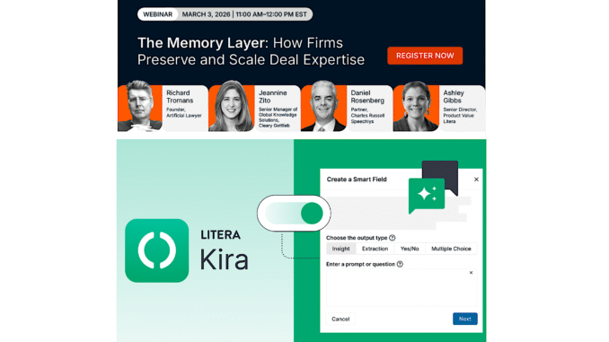 Contract AI stalwart, Kira, which has long been part of Litera, is getting a bunch of upgrades. Meanwhile, here’s one for your diary: a new Artificial Lawyer Webinar with Litera: March 3rd, on the subject of: ‘The Memory Layer: How Firms Preserve and Scale Deal Expertise‘.