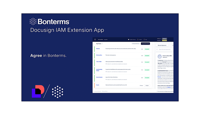He added that Bonterms has been working with Docusign for over two years and that this has all led to the new extension app for IAM.