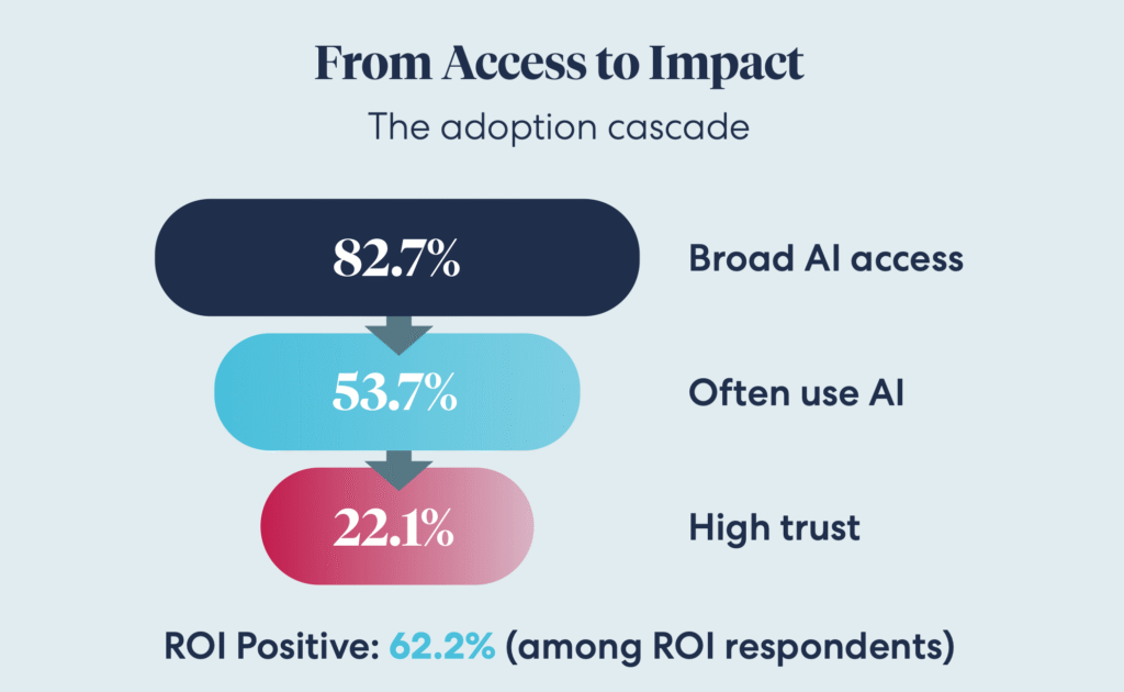 Or as the survey found: ‘Only 22.1% report high trust in outputs, [but] high trust teams are 3x more likely to report positive ROI.’