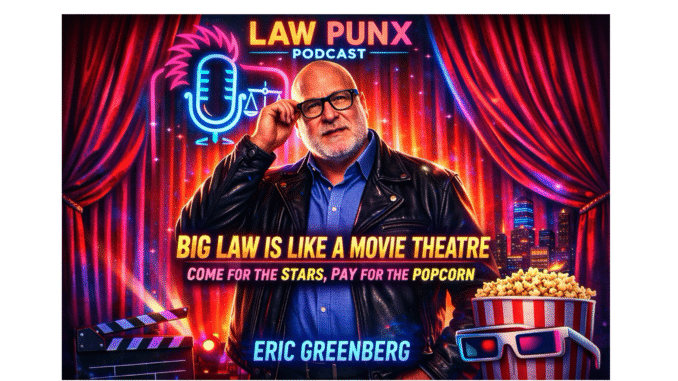 Big Law is like a movie theatre, you come for the legal ‘stars’, but end up paying for the associate ‘popcorn’ – this is the great thesis in the new Law Punx blast with Eric Greenberg, GC at Cox Media Group.
