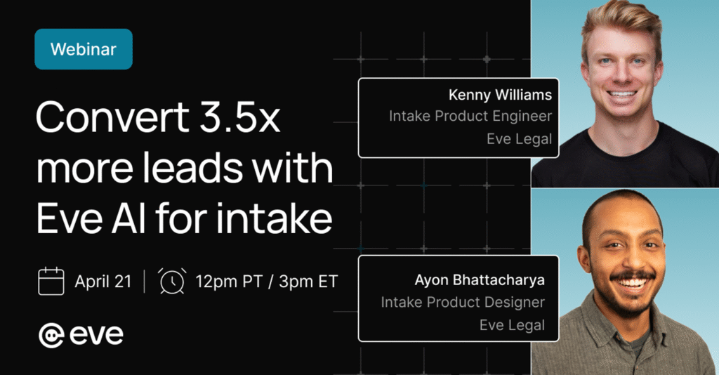 With AI, now you can! Join Eve in a live webinar on April 21st at 12pm PT/ 3pm ET to meet Jenny, the first AI intake agent for plaintiff law.’