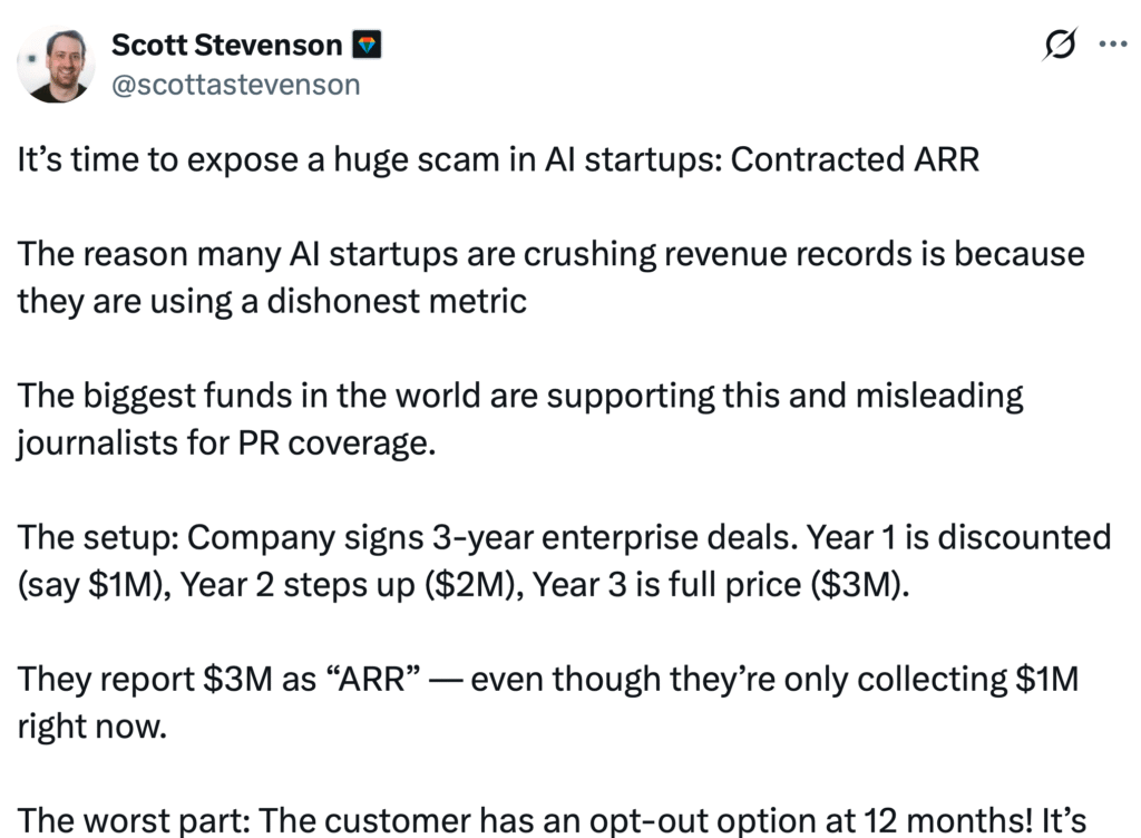 But, if you say that’s ‘ARR’, many people simply read that as real ‘revenue’, i.e. ABC legal AI company has made $50m this year. When in reality it is making $25m.