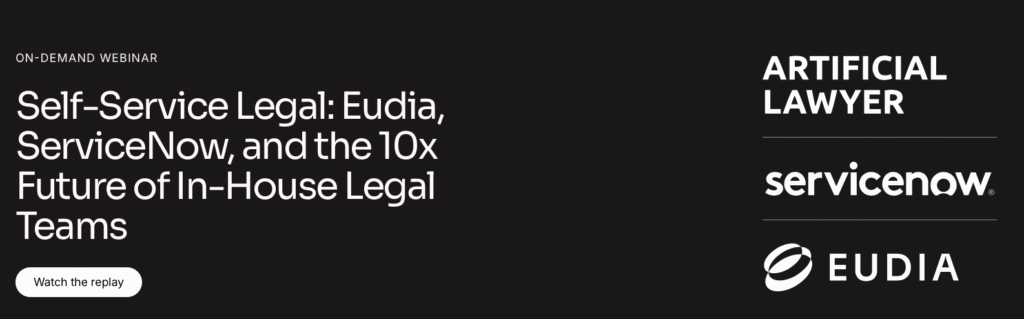 Special Video Bonus: this week AL, Eudia and ServiceNow held a webinar about the two companies’ new partnership and we explored inhouse AI use, and the development of digital twins. You can find a video of the event here (via Eudia). It was a great discussion. Thanks to Eudia’s CEO Omar Haroun and ServiceNow’s Andrew Brereton.