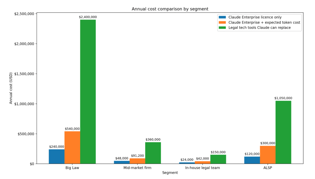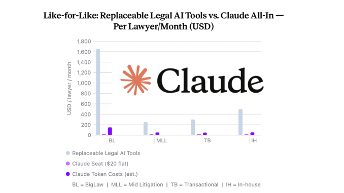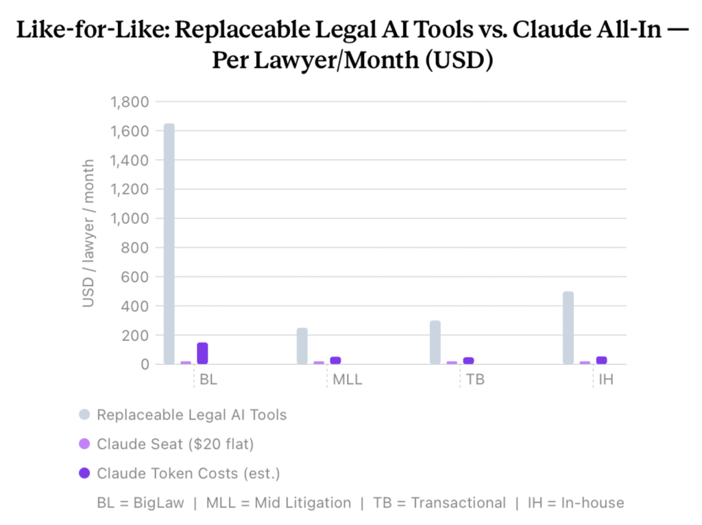 For Big Law, as explored last week, even though there are some apparent savings on face value, the reality is that few large law firms will really go all-in with Claude, nor would it really be a major cost saving, because if we are realistic, they cannot leave their tech stack except for in certain areas where they are not already committed or where it makes sense to accept duplication.